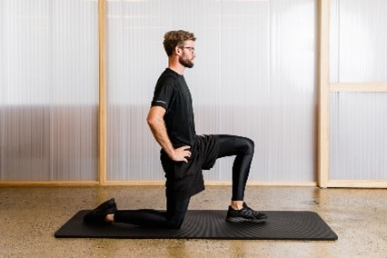 If you’re someone who sits for long periods and can feel your hip flexors getting tight, try having regular breaks from sitting and perform this stretch throughout your day.