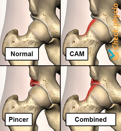 Hip impingement, medically termed Femoroacetabular Impingement (FAI), occurs when there is extra bony growth at the hip joint; either at the acetabulum (hip socket), on the side of the femoral
