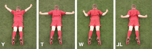 Try this exercise above – lying on your stomach and starting off by having your shoulders in a Y